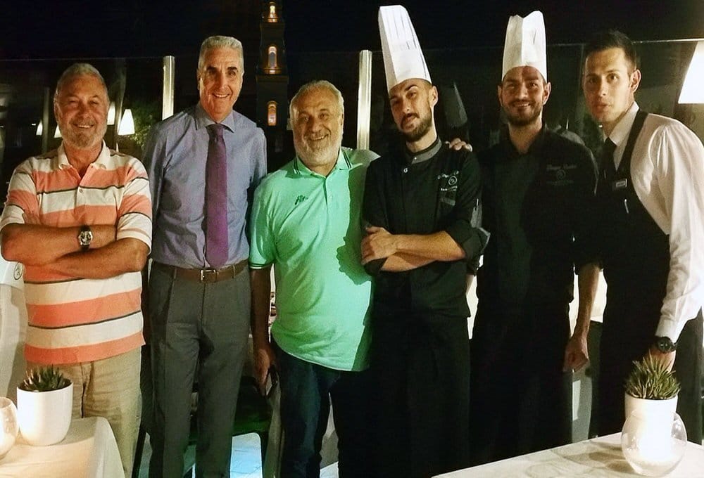 Cala la sera e la Luna accresce l’atmosfera di quel posto bene illuminato da luci soffuse, mentre la cucina all’aperto è in gran fermento. A dirigerla, lo chef Alessandro Cisternino, che da un anno è subentrato a Cosimo Simmini, passato alla cucina dell’Hotel President che, come l’Eos hotel, fa parte della catena Vestas. Vicino a lui Giuseppe Baldari, il suo braccio destro (sous-chef), intento a “spadellare” della pasta.