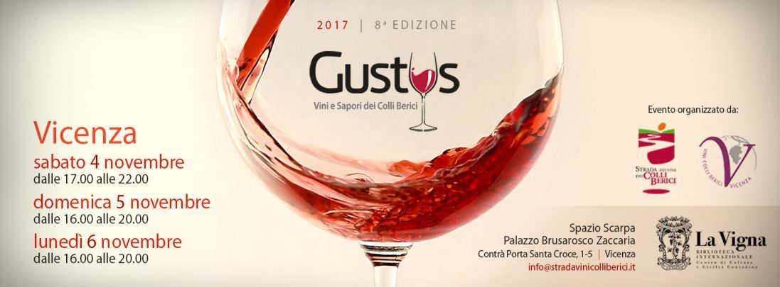Grandi novità per la nuova edizione di Gustus – Vini e Sapori dei colli Berici, l’evento organizzato dal Consorzio Vini Colli Berici e Vicenza e dalla Strada dei Vini Colli Berici, che tornerà a Vicenza nei giorni 4, 5 e 6 novembre 2017. Nella sua ottava edizione il banco d’assaggio per la prima volta sarà infatti aperto al pubblico anche il lunedì, per dare la possibilità ad un maggior numero di operatori del settore enogastronomico di conoscere i vini e i prodotti tipici dell’area berica. Non solo. Ad ospitare l’evento, quest’anno, non sarà più un ambiente palladiano, ma Spazio Scarpa: open space progettato dal designer e architetto veneziano Carlo Scarpa. Lo spazio è situato alla Biblioteca Internazionale La Vigna, Istituto culturale e di documentazione specializzato nel settore agricolo e vitivinicolo, all’interno di Palazzo Brusarosco Zaccaria (Contrà Porta Santa Croce, 1-5).