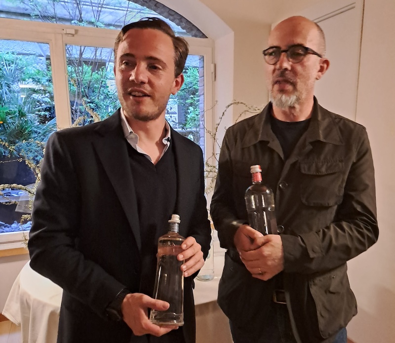 Aggiunge Vaccani “Fin dalle prime fasi del progetto, si era impadronita di me una suggestione: mettere l’acqua al centro del prodotto, renderla protagonista assoluta e non costretta all’interno di un contenitore etichettato. Da quest’idea fumosa Lorenzo è riuscito a costruire una scultura di grande personalità e di assoluta leggerezza, senza dimenticare la praticità richiesta ad un oggetto che è protagonista di un processo lavorativo dinamico come quello della ristorazione e del servizio Horeca, oltre che del servizio al consumatore finale. Forma e sostanza devono sempre andare di pari passo, non può sussistere etica senza estetica: quindi il lato estetico non può mai prescindere dal lato pratico di utilizzo. Senza uno o senza l’altro, un progetto fallisce”.