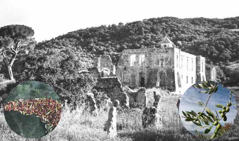 Qui fra boschi, massi rocciosi, resti di case ci sono gli ulivi della azienda Antico Frantoio di Perna, che produce l’olio EVO e lo conserva in vasi decorati di ceramica: https://frantoiodiperna.it/collezione-ceramiche/ .