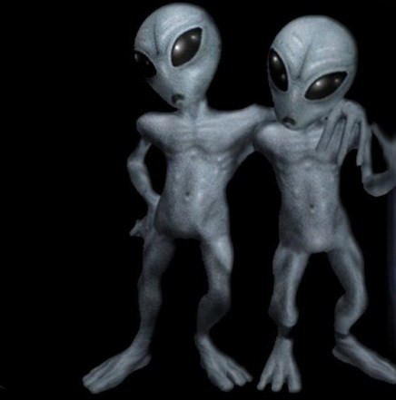 mascherati con coroncine dotate di antenne e i buffi occhiali da sole, stile grandi occhi da Grigio, che sono venduti (ovviamente) nel negozio di gadget.