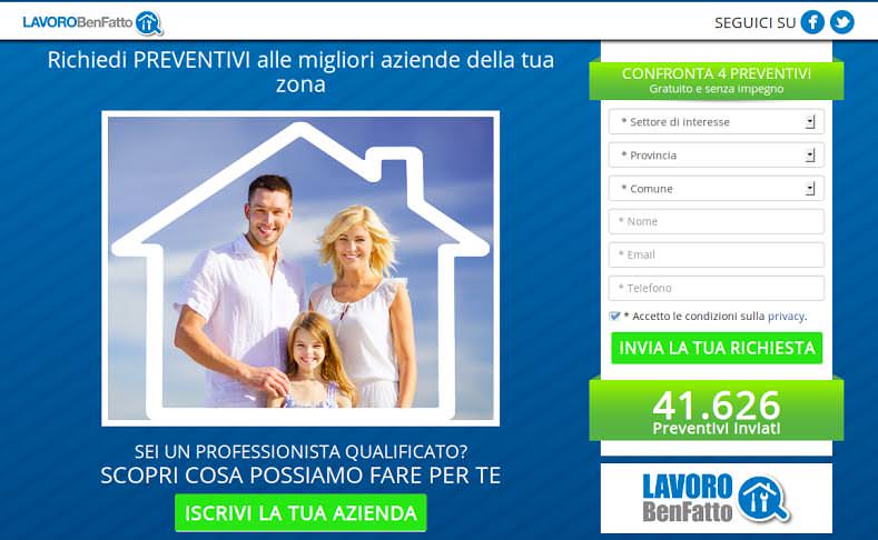 P- Sulla scia del libero mercato, LAVORO BenFatto reagisce educando l’utente finale ad un acquisto consapevole, ciò viene proposto attraverso l’invio di guide esplicative di quello che è un lavoro benfatto: si indirizza il cliente a porre domande e si illustra come scegliere il giusto preventivo.