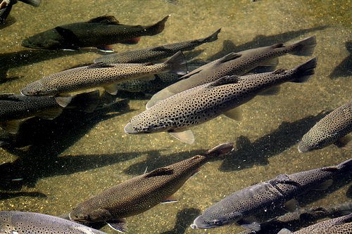Ben cinquecentomila avannotti di trota iridea e salmonata vengono cresciuti nelle vasche dell’azienda riempite con l’acqua di risorgiva.