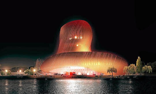 Lo studio di architettura X-TU (Parigi) e Casson Mann Limited (Londra) per la scenografia, hanno messo a punto questa cattedrale museo, che illumina Bordeaux di notte grazie a LED rosso. Il movimento di rotazione è un omaggio al gesto che ogni bevitore fa con un bicchiere di vino.