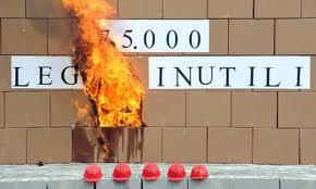 Piccone e torcia, Calderoli manda al rogo 375.000 leggi inutili