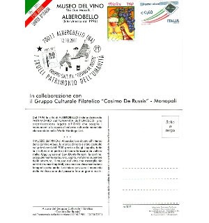 nella giornata del prossimo 12 ottobre, le Poste Italiane installeranno nella Cantina un apposito Ufficio Postale in cui verrà apposto l’Annullo Filatelico a una speciale cartolina,