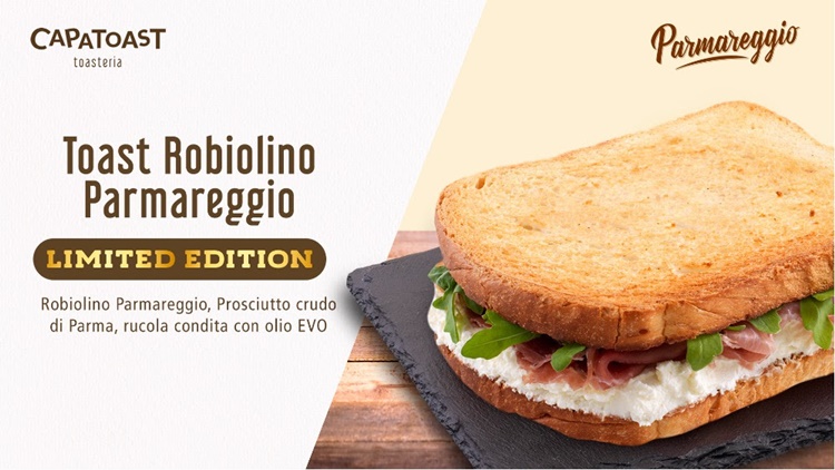 Reggiano e nei formaggi duri DOP, annunciano una nuova partnership per un’offerta di prodotti gustosi e di alta qualità. Dal mese di ottobre in tutti i 35 punti vendita distribuiti sul territorio nazionale, saranno disponibili speciali toast in edizione limitata e nuove proposte esclusive firmate da Parmareggio. Si parte il 1° ottobre con il Toast Robiolino Parmareggio Limited Edition, che avrà come protagonista il Robiolino Parmareggio, un formaggio dal gusto unico che unisce alla freschezza e cremosità di un grande classico della tavola il gusto del Parmigiano Reggiano. Sarà, questa, la prima delle due Limited Edition prodotte grazie alla collaborazione con Parmareggio, che arricchiranno di gusto il menu di CapaToast per soddisfare anche i palati più esigenti.