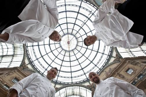 Che bella la foto scattata la settimana scorsa da Alessandro Castiglioni con i quattro moschettieri del Risotto allo zafferano ritratti in una posa davvero insolita al centro