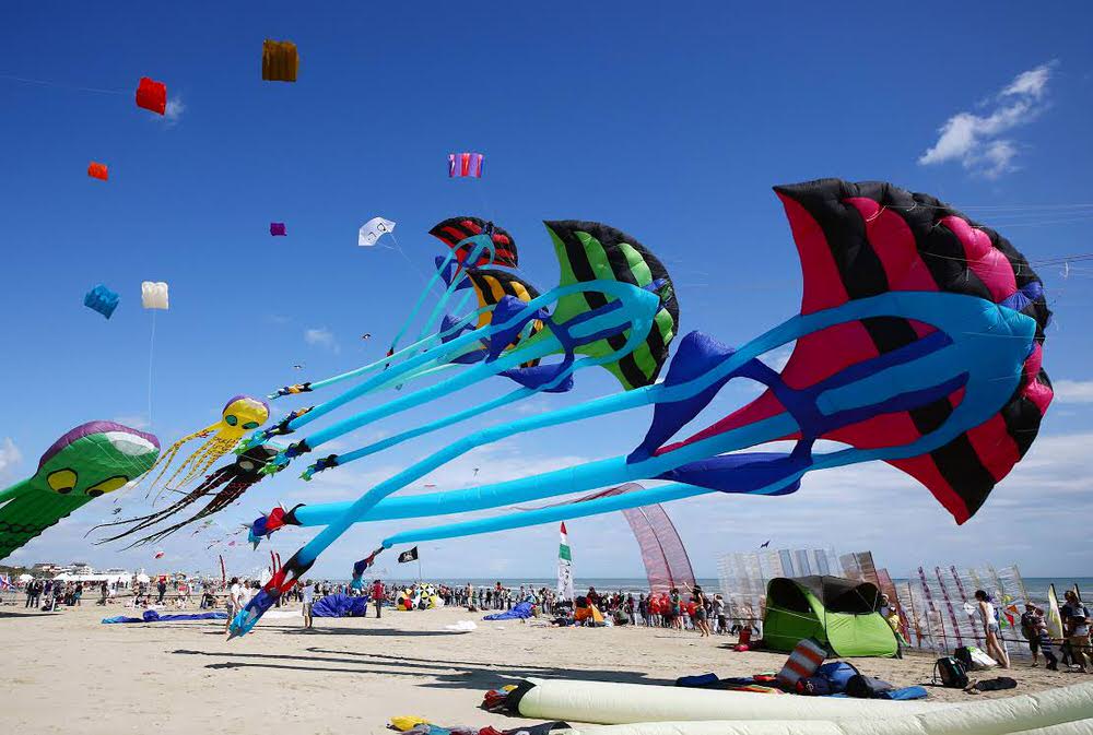Sulla spiaggia inoltre installazioni eoliche e suggestivi concerti e voli in notturna. Il Festival propone i più sorprendenti campioni di volo acrobatico, i maestri del combattimento, gli atleti del power kiting e del kite surf, gli interpreti della fotografia aerea, gli storici dell’aquilone e persino scienziati alla ricerca di fonti di energia alternativa.