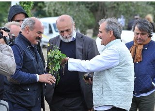 Cover: foto di archivio con Peppe Zullo, Oscar Farinetti e Carlin Petrini a Orsara di Puglia