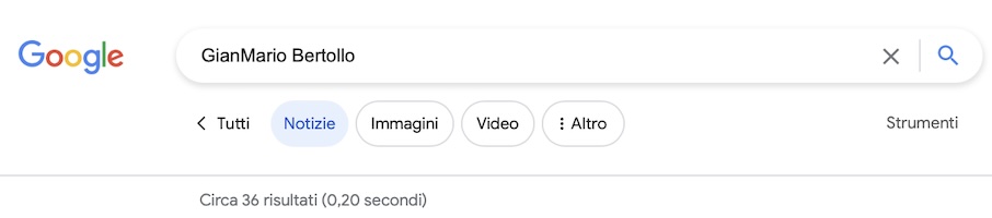 Cerca Gianmario Bertollo su Google News (tre pagine, 36 risultati trovati)