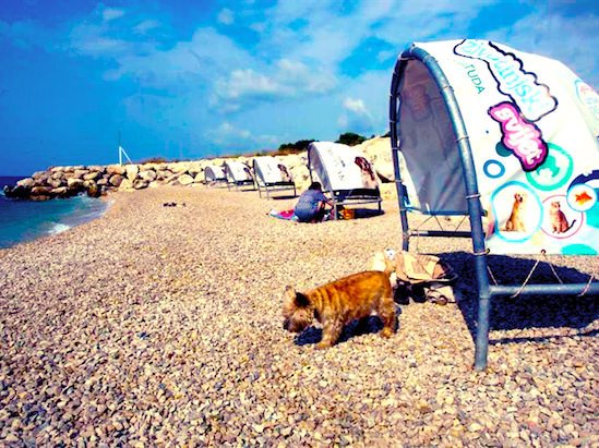 Entrando, un cartello detta le regole a cui devono attenersi proprietari e animali sulla spiaggia. Qui si trovano anche aree ombreggiate su cui sostare dopo il bagno o una doccia rinfrescante. Posto ideale per rilassarsi all’ombra in compagnia dei loro padroni, senza rischiare un colpo di calore.