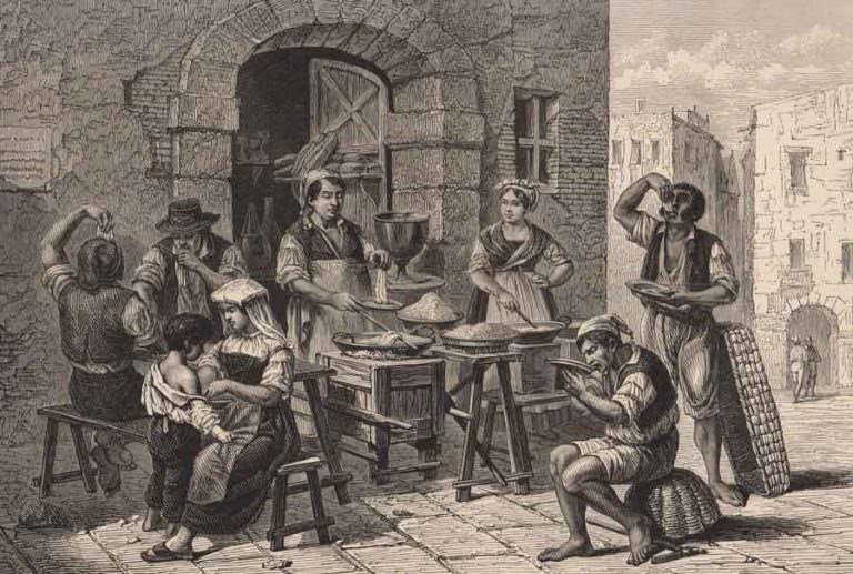 Il primo approccio letterario, didattico e costruttivo sulla cucina italiana, scrutando fra menù, libri e ricettari aristocratici, avviene lungo l’asse geografico napoletano-palermitano, grazie alle nozioni e ai testi lasciati dalla scuola alimentaria e sanitaria salernitana del XI-XII° secolo. Già 100 anni dopo, la cultura della tavola e del cibo prende forma in termini più scientifici, didattici, letterari e mitici, e inizia una migrazione contaminazione lungo lo stivale, ma sempre con un occhio privilegiato verso il sud Italia.