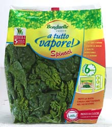 prodotto dal microonde fa sì che gli spinaci siano cotti nell’arco di soli sei minuti dal vapore generato dall’acqua naturalmente presente nelle foglie. La confezione