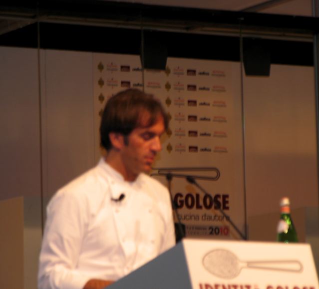 Dopo il benvenuto del Patron Paolo Marchi, ha aperto le danze Davide Oldani che ha presentato il suo “D’O, la tradizione in cucina” di Cornaredo. (D’O , le sue iniziali