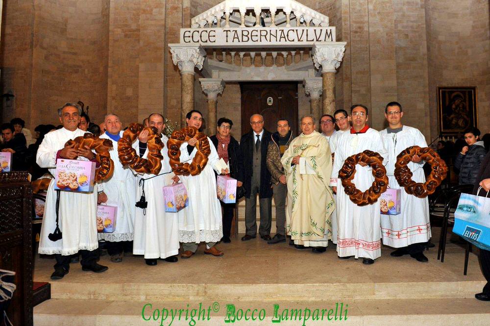 Il pane, al termine della “Cena Domini” dopo essere stato benedetto, viene donato ai dodici apostoli (in questo caso) a dodici cittadini meno abbienti del comune di Ruvo di Puglia.