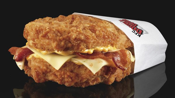 Dai progettisti della KFC è arrivato Double Down due fette di bacon e formaggio infilate tra due pezzi di pollo fritto, che svolgono il ruolo tradizionale per pane. Per ammissione dei