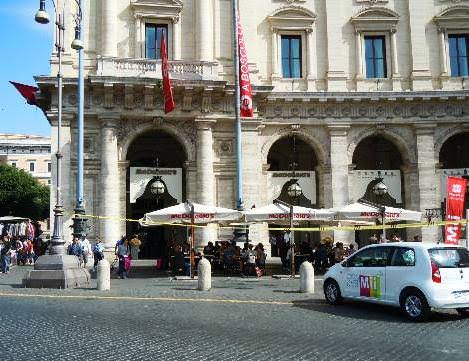 Troppo ovvio é il paragone con la prima sede situata nella zona di Piramide, nella quale questa struttura perde ovviamente per gli spazi ridotti ed obbligati, un ambiente delimitato per l’architettura non certo moderna come l’altra, ma comunque ben studiato e distribuito. Al piano terra e al piano sottostante tutti i prodotti e le ricercatezze alimentari, e sopra due piani di ristorazione con scelta tra carne, pasta e pizza. Elemento notevole invece è l’esterno, che qui gioca la sua carta vincente, perché si affaccia in piena Piazza della Repubblica sotto il colonnato e davanti alle rovine della città eterna.