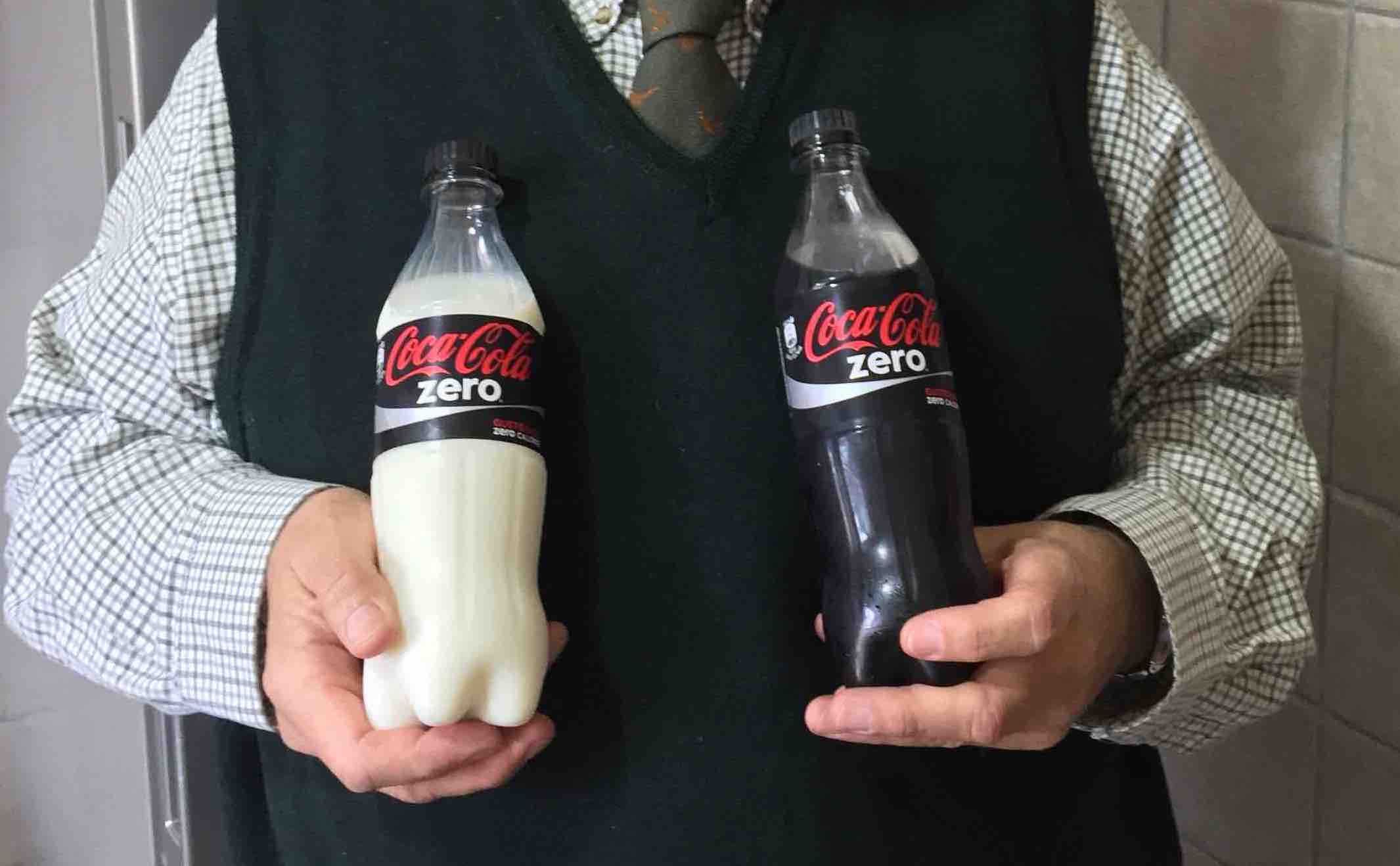 Ha scoperto un ingrediente , un procedimento che rende bianca come il latte la bottiglietta quotidiana di Coca Cola Zero lasciandole intatte tutte le altre caratteristiche.