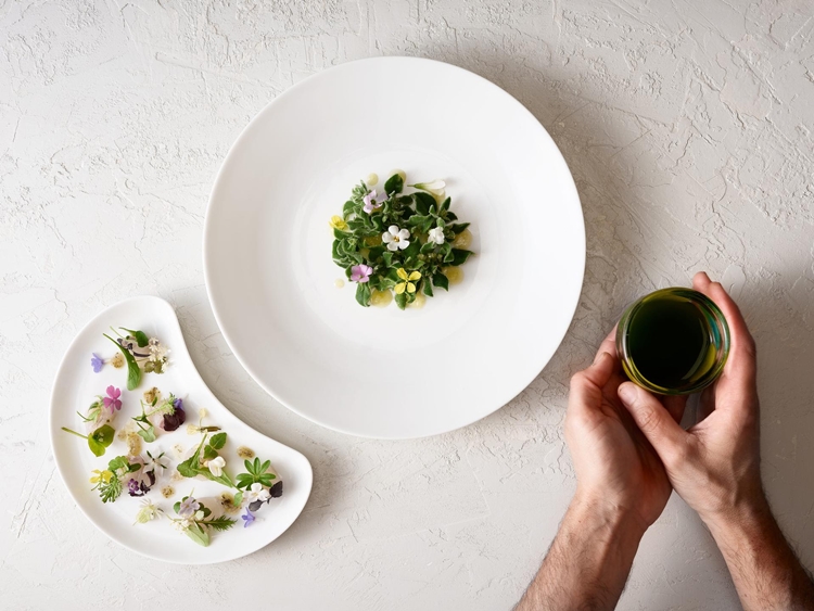 “Il mio colore preferito è il verde, ne sono circondato e ne traggo ispirazione; da qui nasce la mia passione per il mondo vegetale, il sogno realizzato di un orto e la possibilità di sperimentare quotidianamente sapori diversi e abbinamenti insoliti usando piante e fiori edibili, riscoprendo erbe lontane e a volte dimenticate, un viaggio nella botanica e spesso nella storia.” Inizia così il racconto di Enrico Crippa di questo piatto – Ficoide con branzino – un viaggio dai sapori marini, in un percorso generoso di suggestioni.