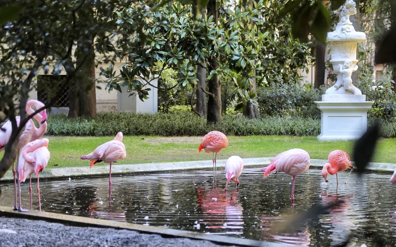 Proprio nel centro della città, nel giardino privato di Villa Invernizzi (Quartiere del Quadrilatero del Silenzio in via dei Cappuccini, vicino a Corso Venezia), vive una piccola colonia di fenicotteri rosa.