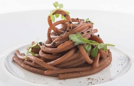 Pasta nuda. E’ la tentazione osé di Davide Scabin di Combal.zero a Rivoli, alle porte di Torino. I vestiti ci sono, e sono pure sexy. Ma stanno accanto, ammonticchiati in un angolo come dopo un amplesso. L’idea, dunque, è quella di presentare la pasta – purché grandi firme e grandi formati – come semola l’ha fatta, con a fianco pietanze che non sono semplici condimenti. Come del resto la pasta non è solo un contorno come da discutibile tradizione tedesca.