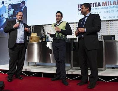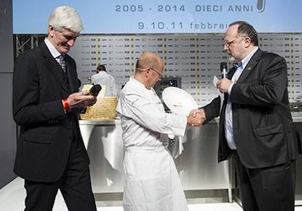 Premio Creatività in cucina a Enrico Bartolini del ristorante Devero di Cavenago Brianza (Monza Brianza). Premia Piero Gabrieli di Petra-Molino Quaglia