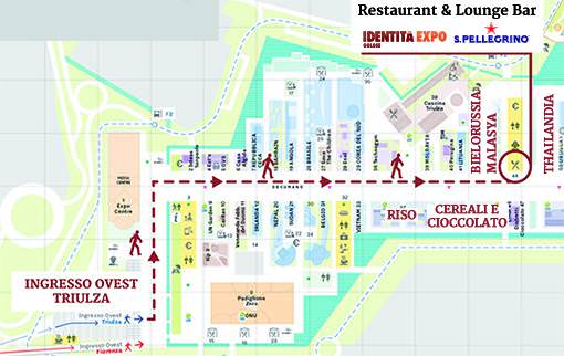 Per accedere a Identità Expo, entrando dall’ingresso Ovest Triulza (quello che collega la stazione ferroviaria di Rho-Fiera) oppure dall’Ovest Fiorenza (quello della stazione metropolitana), occorre percorrere il Decumano, il viale principale che vede affacciati i padiglioni e cluster. Prima di metà percorso, troverete la bandiera e il padiglione della Malesia (numero 11). Appena dopo (e appena prima del padiglione della Tailandia, numero 12), sempre sulla sinistra, si affaccia la stecca di servizio C1, la nostra.
