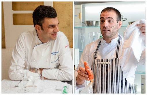 Il primo appuntamento, rigorosamente su invito, si terrà la sera di domenica 6, quando le cucine d’Identità Expo vedranno come protagonisti due giovani pezzi da novanta come Marco Martini (a destra nella foto) e Riccardo di Giacinto, rispettivamente ai capitolini Stazione di Posta e Alloro. Sul tema “Roma nel cuore del Lazio” proporranno un menu di quattro portate. Eccolo: