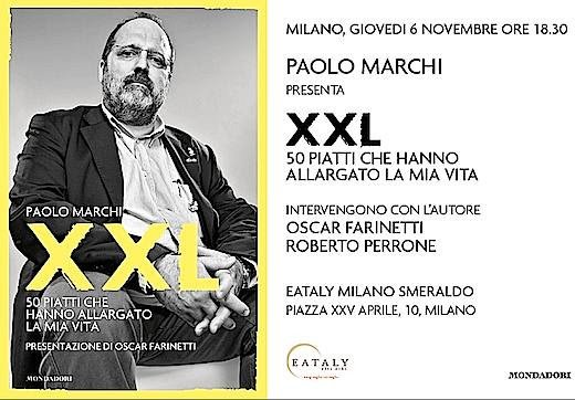 In libreria da una settimana, giovedì prossimo, 6 novembre, Oscar Farinetti e Roberto Perrone presenteranno alle 18.30, da Eataly Smeraldo a Milano, XXL, 50 piatti che hanno allargato la mia vita. La vita e il girovita del sottoscritto, Paolo Marchi, che coglie l’occasione offertami dall’uscita di questa newsletter per ringraziare Marco Bolasco per la sua recensione.