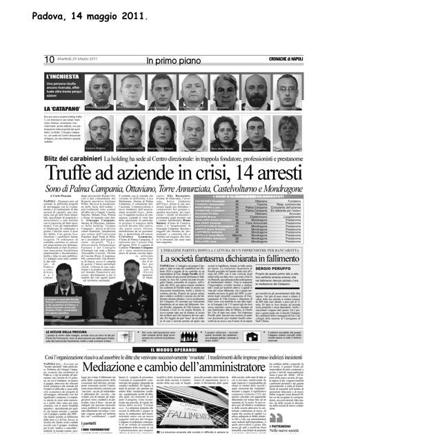 Con sentenza del GUP di Padova del 22/09/2011 i componenti del Gruppo Catapano, già arrestati nel marzo scorso, sono stati condannati a pene detentive e pertanto rimangono in