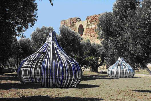 presenta , per la prima volta in Europa, a Scolacium. Il parco viene occupato, poi, da due immensi coni stradali di cinque metri d’altezza che creano un cortocircuito ironico con l’ambiente