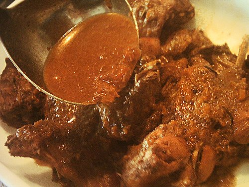 circa ¾ d’ora. Disporre la carne su un piatto caldo con crostini dorati.