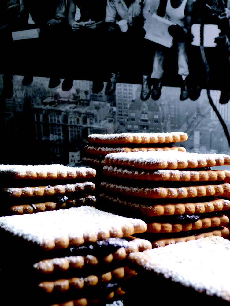 di limone. Portare di nuovo a bollore e continuare a mescolare per 3 minuti. Togliere dal fuoco. Disporre i biscotti uno sopra l’altro alternandoli ad uno strato di cioccolato. Creare piccole
