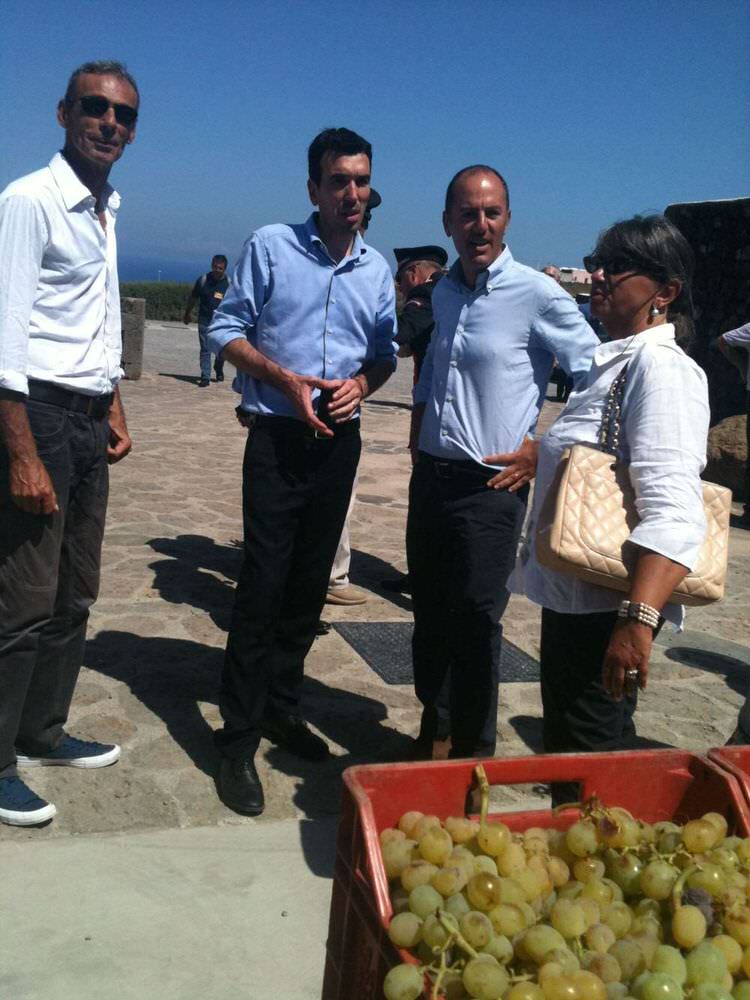Una giornata incontro con l’Onorevole Maurizio Martina che da Roma è arrivato a Pantelleria per partecipare alla vendemmia dello Zibibbo e alla conferenza stampa dedicata alla viticoltura eroica delle isole minore come anteprima per l’inaugurazione di Passitaly 2014. La prima edizione di questa rassegna dei vini passiti del Mediterraneo si svolge a Pantelleria dal 31 agosto al 4 settembre, con un programma denso di conferenze, workshop, eventi, degustazioni e approfondimenti sugli aspetti legati all’agricoltura, al paesaggio, alla storia, all’archeologia e al mare di Pantelleria e al territorio delle isole di Sicilia. Il Ministro ha iniziato la giornata con una conferenza stampa nel Castello di Pantelleria, il cui tema è stato “La viticoltura delle isole: una risorsa per la tutela del paesaggio e la creazione di reddito”, un incontro con i giornalisti per presentare le azioni che il Ministero in collaborazione con la Regione Siciliana e l’Assessorato regionale all’ Agricoltura ed il Comune di Pantelleria intraprenderà per tutelare la viticoltura eroica delle piccole isole. Presenti insieme al Sindaco Salvatore Gino Gabriele, Ezechia Paolo Reale, Assessore Regionale dell’Agricoltura, Antonino di Giacomo, Commissario Straordinario IRVO, Antonio Rallo, Presidente di Cda Doc Sicilia e alcuni rappresentanti dei produttori dell’isola. Il Ministro Martina ha proseguito la giornata con l’inaugurazione della vendemmia in una piccola azienda che produce vino Passito in località Punta Kharace, da sempre nota sull’isola per la maturazione in anteprima delle uve Zibibbo ed ha assistito alla raccolta delle uve Zibibbo dell’azienda Donnafugata nella cantina in località Khamma dove ha visitato il giardino pantesco, riconosciuto come patrimonio del FAI.