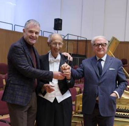 – il Maestro Claudio Scimone con Achille Colombo Clerici e con il Presidente del Conservatorio di Milano Ralph Alexandre Fassey