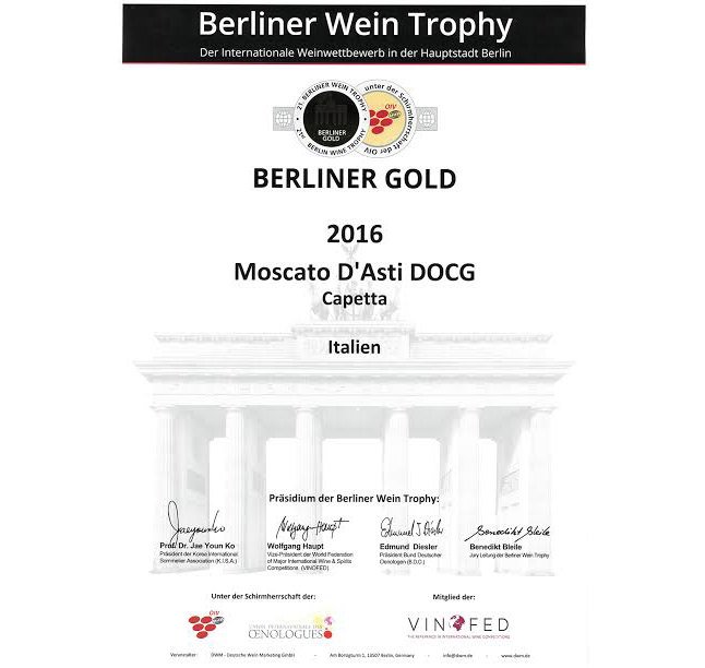 Il Moscato d’Asti DOCG Francesco Capetta ha vinto la Medaglia d’Oro al concorso internazionale Berliner Wein Trophy 2017.