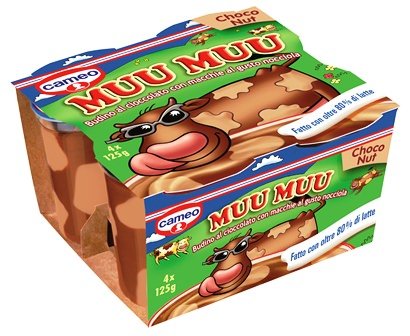 Divertente e golosa, la nuova referenza incontra il gusto dei bambini, che da sempre amano il sapore del cioccolato e della nocciola. La celebre mucca con gli occhiali che balla il rap la rende divertente e giocosa, facendo del dessert con le macchie Muu Muu una merenda ancora più golosa. Con oltre l’80% di latte, ingrediente importante per i bambini durante la crescita, e la qualità garantita da cameo, accompagna con divertimento e una carica di energia le giornate dense di attività dei bambini di oggi.