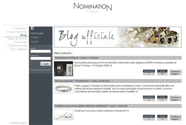 Nomination, leader nel settore dei gioielli acciaio e oro, ha deciso di creare il proprio blog dopo il successo ottenuto con i social network FaceBook e YouTube, dove è possibile