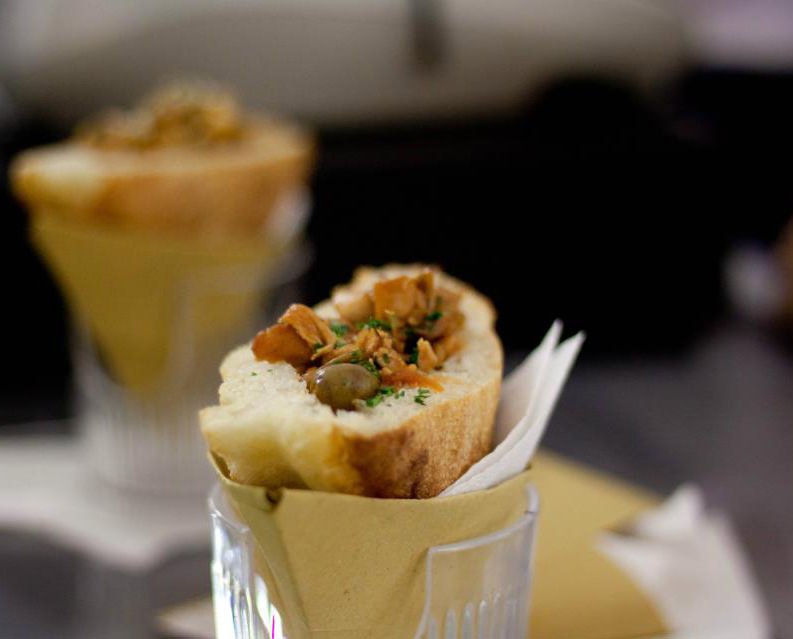 trapizzino, un delizioso incrocio tra tramezzino e pizza, che Uliassi sta proponendo in anteprima ai visitatori del Salone del Mobile di Milano.