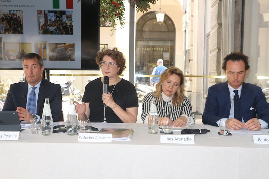 Katharina C.Hamma, Chief Operating Officer di Koelnmesse, Thomas Rosolia, Amministratore Delegato Koelnmesse Italia, Ines Arondio, Dirigente ICE settore Agroalimentare e Vini e Paolo Zanetti, Vice Presidente Federalimentare, quest’ultima partner, assieme a Fiere di Parma, del colosso di Colonia.