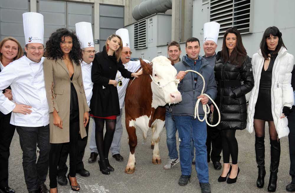 Dalla mucca al cono… in venti minuti. Nella giornata inaugurale del SIGEP di Rimini Fiera (aperta fino a mercoledì 27 gennaio), un bellissimo esemplare di pezzata rossa