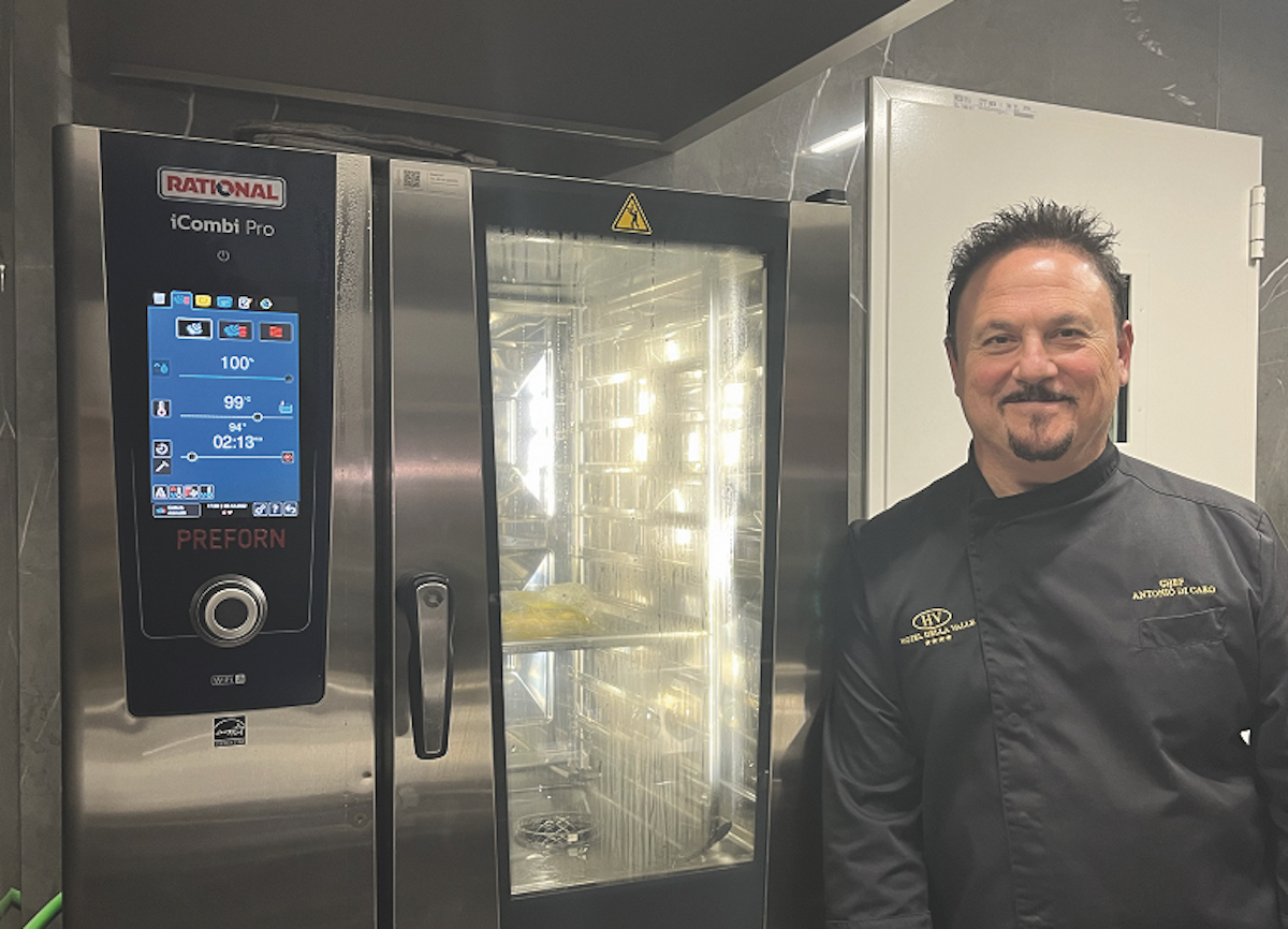 Lo Chef Antonio di Caro ha spiegato che la loro esigenza è quella di mantenere alti il gusto dei sapori tradizionali e la qualità dei prodotti sia quando cucinano piccole quantità, così come quando la produzione è molto più elevata, tenendo in considerazione anche le difficoltà legate alla scarsità di personale nel settore. Nella tecnologia RATIONAL hanno trovato la risposta: «Non dobbiamo più controllare le cotture come prima – afferma di Caro – possiamo cuocere la carne la notte e trovarla pronta l’indomani». La cucina è stata dotata, infatti, di un iCombi Pro 61, un 101 e un iVario 2S che vengono utilizzati per gestire le preparazioni del ristorante, mentre nell’area di produzione dedicata alla banchettistica ci sono un iCombi Pro 202 e un iVario L, dedicati appunto a cuocere grandi quantità di cibo e rigenerare i piatti per il servizio contemporaneo di centinaia di ospiti.