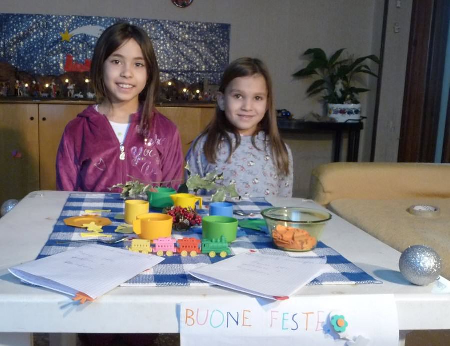 arrivano le mie due nipotine e mi lasciano un foglietto di quaderno quadrettato, ben ripiegato. Lo stesso invito, il foglietto è in effetti un invito a pranzo nel nuovo “ristorante” che