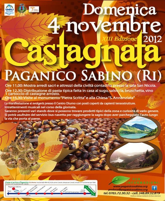 Novembre, tempo di castagne. Così, Paganico Sabino (Rieti) onora la sua “Ghianda di Giove” con la Castagnata del 4 novembre, sagra gastronomico-culturale giunta alla 13° edizione.