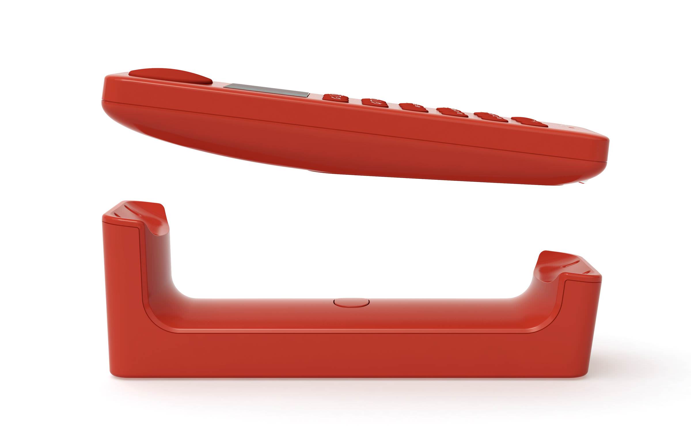 ribalta. L’elegante base, disponibile negli stessi colori che impreziosiscono il telefono, ovvero bianco, rosso e nero, è infatti in grado di accogliere il cordless sia in orizzontale,