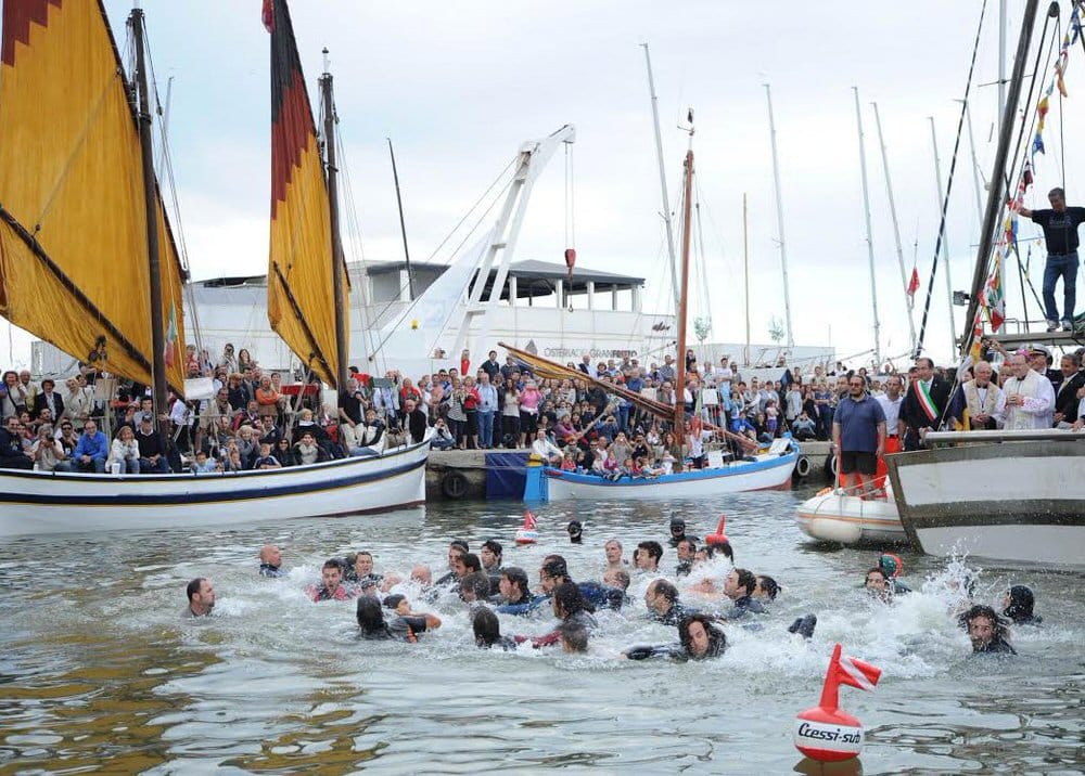 Cervia: L’evento trova le sue origini in una storia sospesa fra leggenda e realtà. Si narra che nel 1445 Pietro Barbo, Vescovo di Cervia , al suo ritorno da Venezia, fosse sorpreso da una terribile tempesta in mare. La storia racconta come il Vescovo con la preghiera, la benedizione delle acque e il pegno dell’anello pastorale riuscisse a placare le tempesta e a portare in salvo se stesso e l’equipaggio. Il Vescovo allora promise che ogni anno nel giorno dell’Ascensione avrebbe celebrato questo evento con una cerimonia solenne.