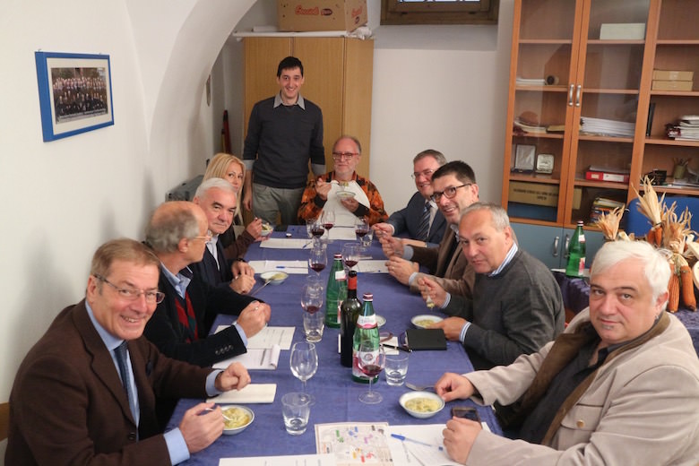 presidente Edoardo Raspelli (non ha bisogno di presentazioni… il successo di Storo è anche merito suo), giornalisti gastronomi Angelo Carrillo, Giuseppe Casagrande, Gianmichele Portieri e Sara Colonna; Giampietro Comolli (economista e imprenditore, enogastronomo, grande esperto di vino), il sindaco di Storo Luca Turinelli e il vicepresidente del Consiglio provinciale di Trento Walter Viola.