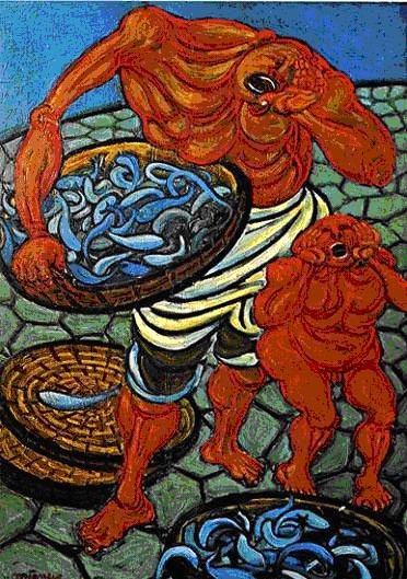divenuto indifferente e violento. E’ proprio alla fine degli anni Settanta e nei primi anni Ottanta, che Migneco sembra riflettere sul “destino trafitto” e sul presagio di morte, facendo ricorso