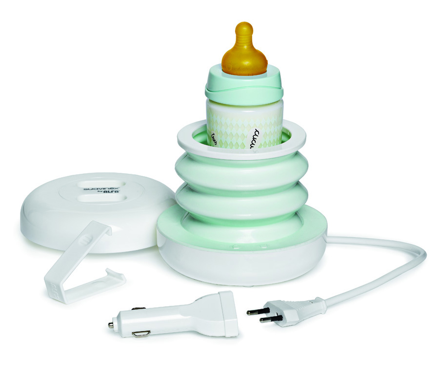 Completa la gamma uno scalda biberon elettrico portatile, richiudibile a fisarmonica e utilissimo sia in casa sia in viaggio grazie all’adattatore per auto, che consente di riscaldare un biberon in 3 minuti e un vasetto in 7. Estremamente compatto, si richiude completamente occupando il minimo ingombro, 13 cm di diametro e 7 cm di altezza.